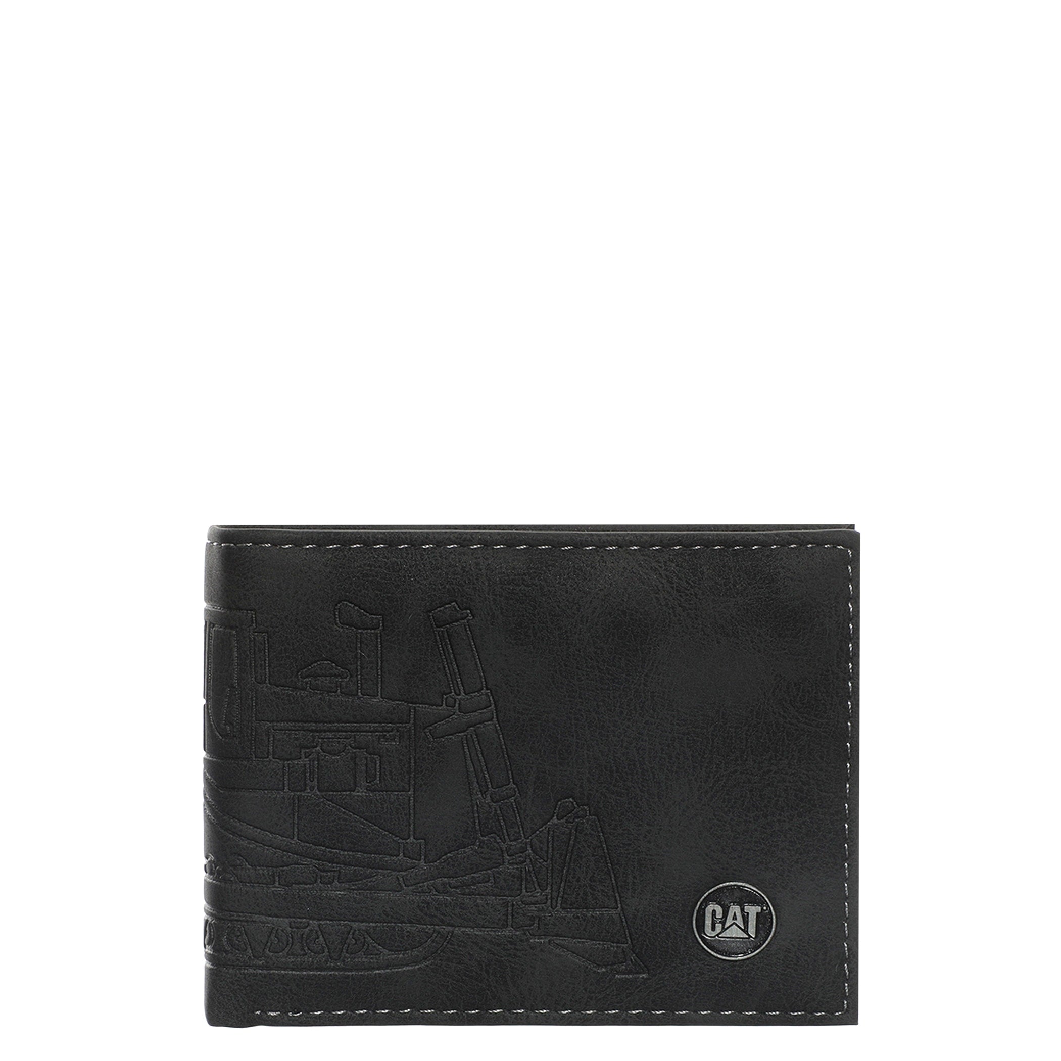 Cartera Cat para hombre elaborada en material sintético en color gris de diseño atemporal con un detalle único y distintivo: un grabado en relieve de una de las icónicas máquinas de construcción de la marca. Con textura granulada y costuras blancas que contrastan para un estilo más robusto. Además, cuenta con un pequeño logo circular de CAT en la esquina inferior derecha, lo que la convierte en un accesorio ideal para quienes buscan funcionalidad y un toque de la herencia de la marca.