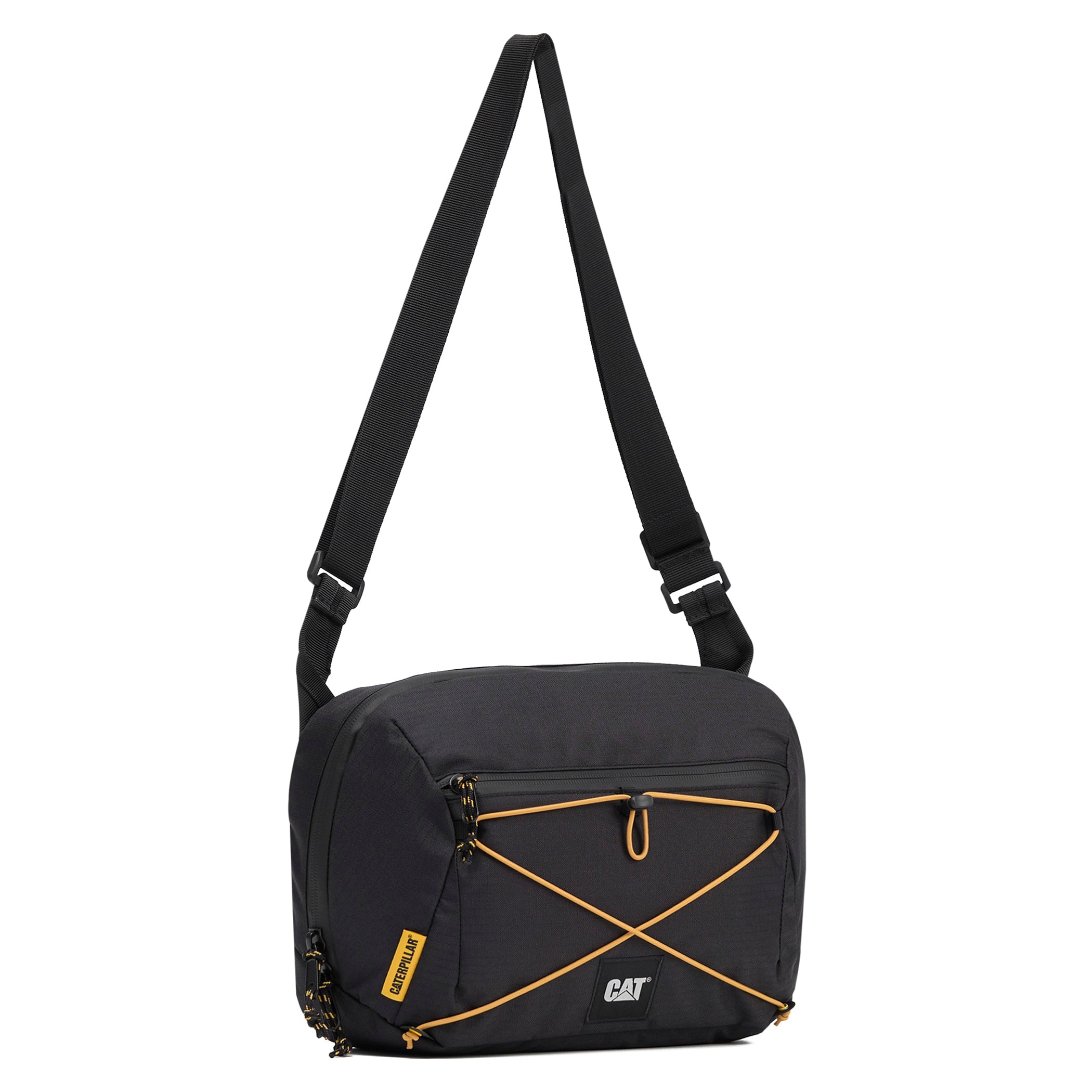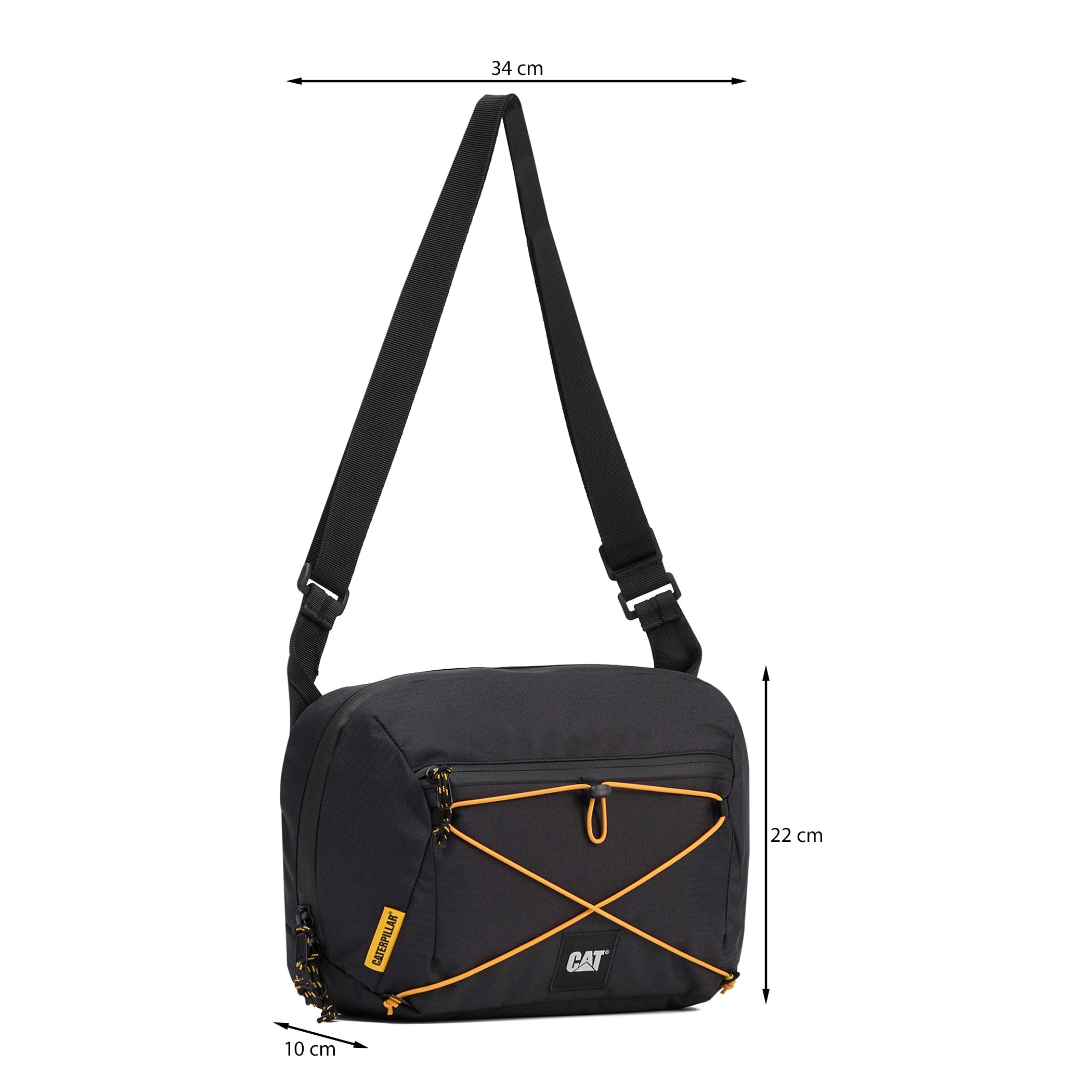 Bolsa CAT de la colección City Vibes, elaborada en poliéster reciclado y diseñada para ofrecer almacenamiento práctico, organización y un estilo urbano funcional. Incluye un cordón elástico frontal para guardar objetos de acceso rápido, así como una bolsa frontal con cierre y llavero integrado. Su compartimento principal cuenta con espacio para tablet y en la parte trasera incorpora una bolsa adicional con cierre. Su correa ajustable permite un uso cómodo y versátil durante todo el día, mientras que el cierre impermeable protege el contenido.