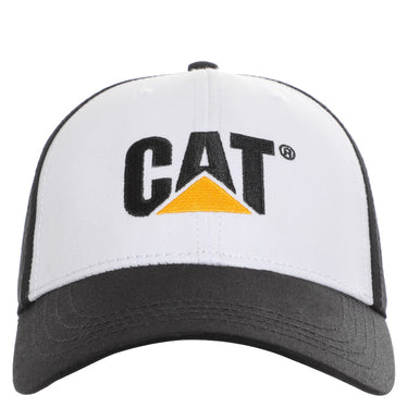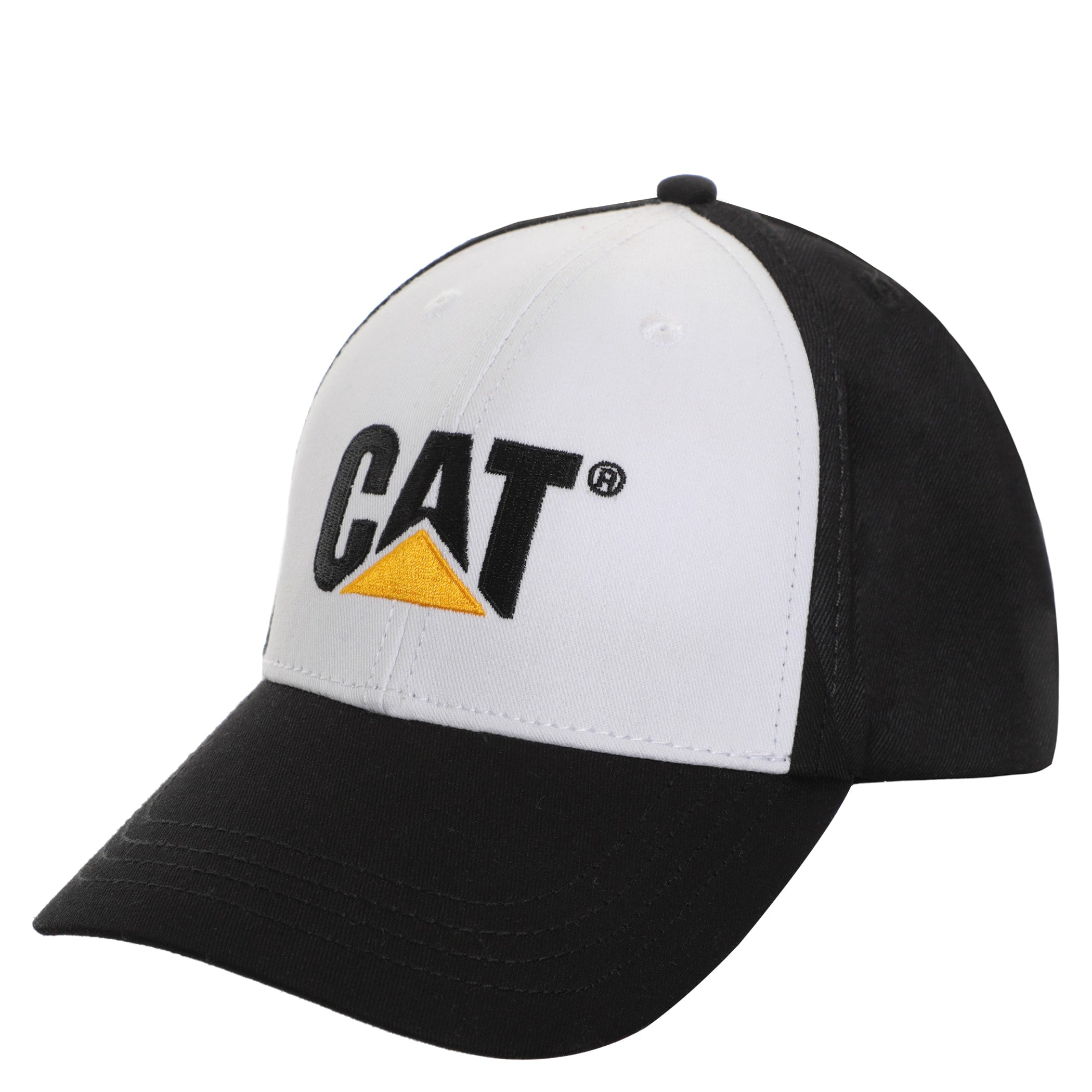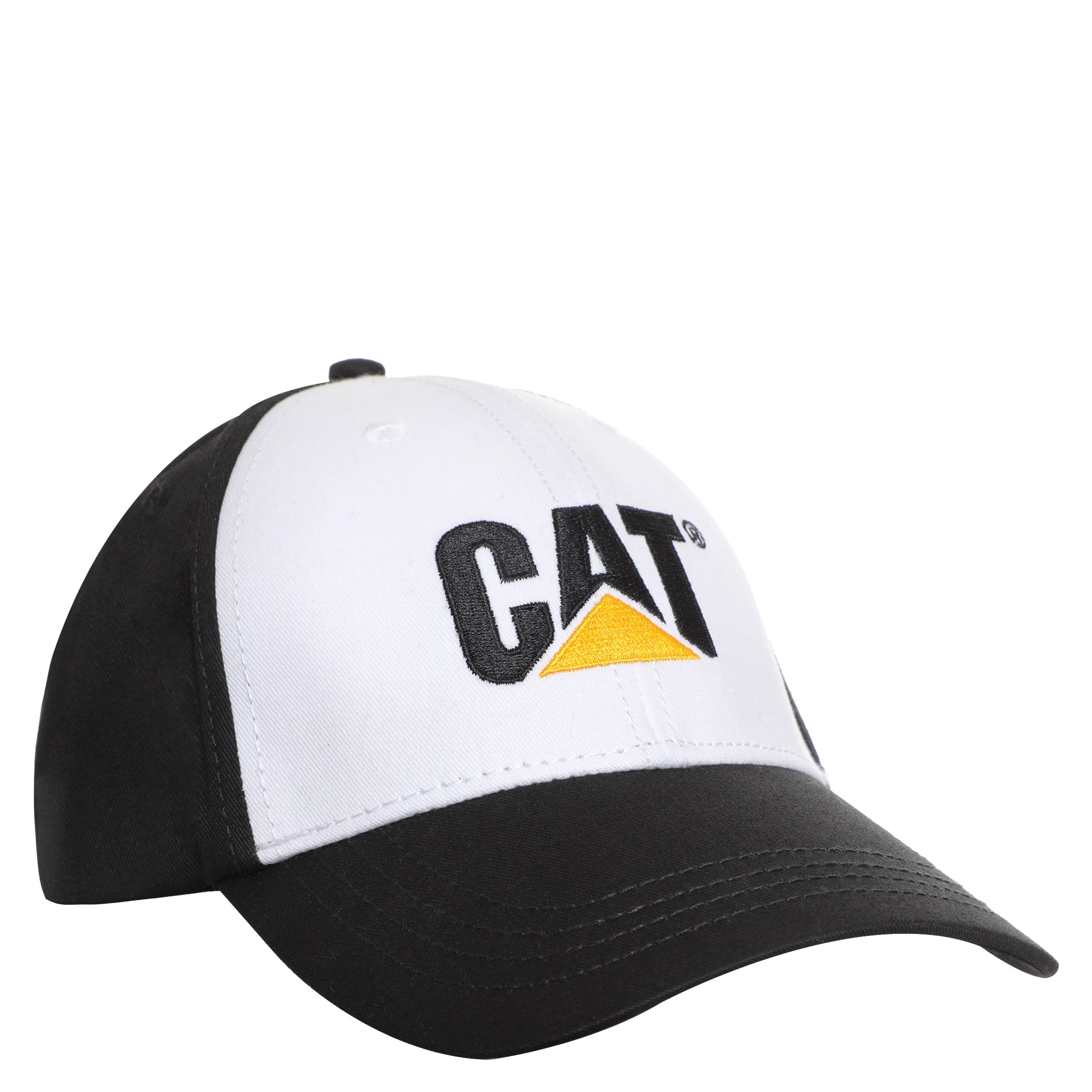 Gorra Cat para hombre elaborada en material textil color blanco con negro y un diseño clásico de seis paneles. En la parte frontal, luce un llamativo logo de la marca, es ideal para protegerte del sol y complementar un estilo casual con un toque utilitario.