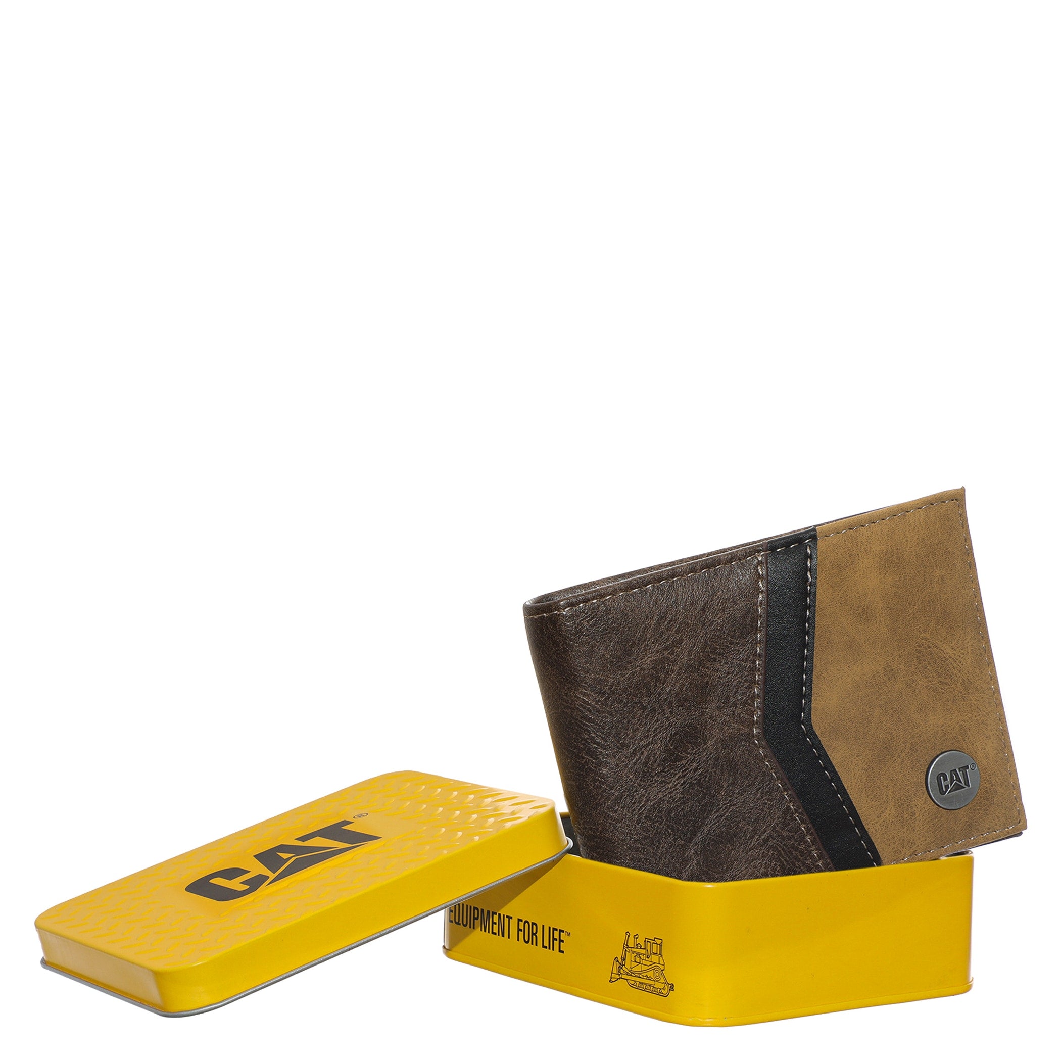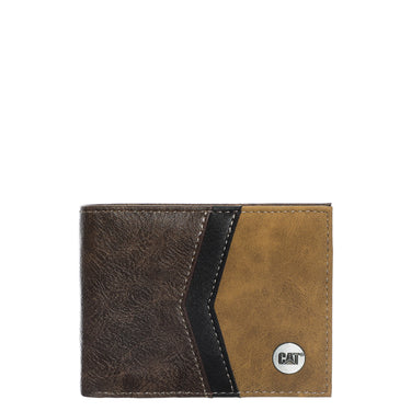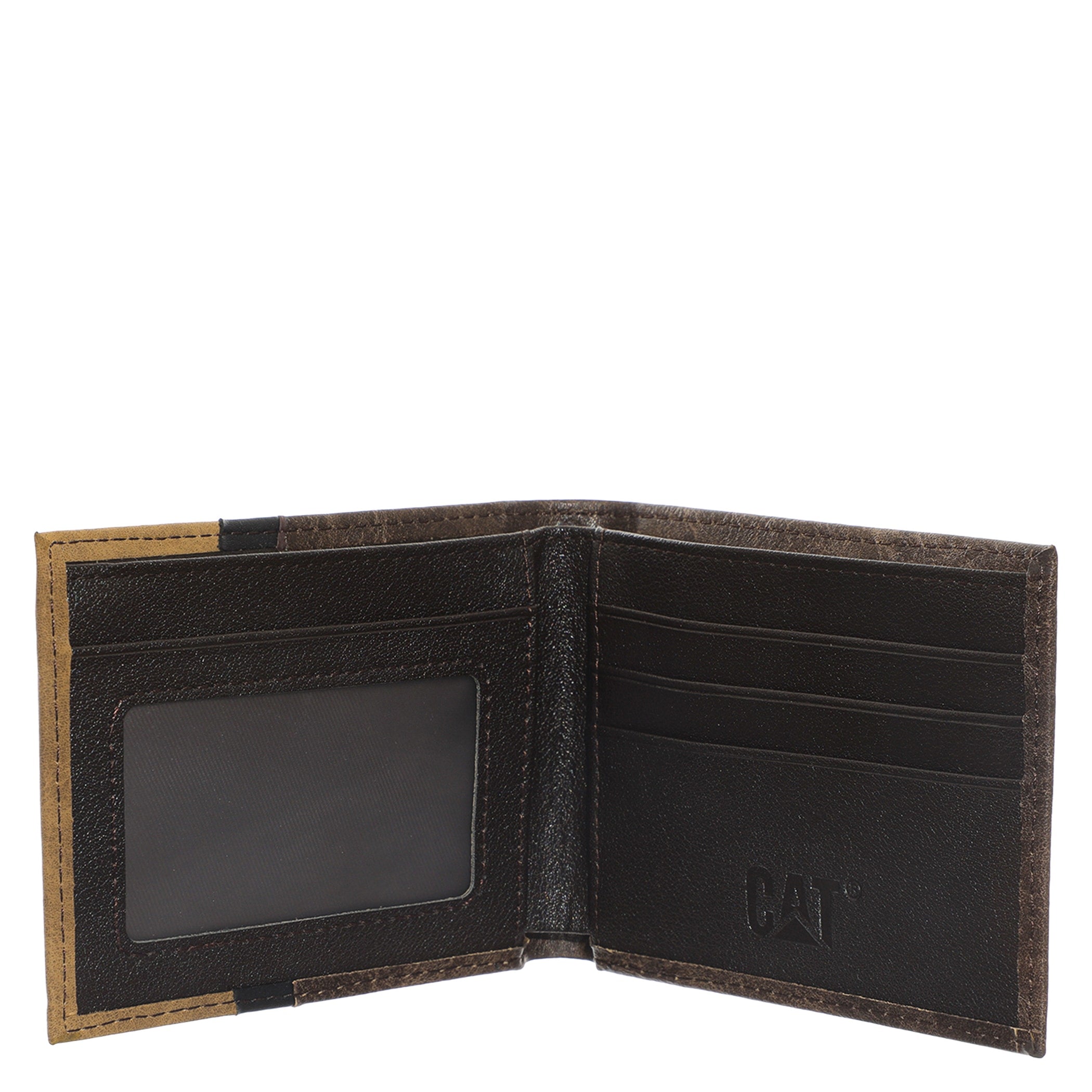 Cartera Cat para hombre elaborada en material sintético y diseño clásico de doble pliegue. Presenta un acabado con el logo de CAT grabado en relieve en la parte frontal. Es un accesorio funcional y atemporal, ideal para organizar tus tarjetas y billetes de forma segura y con estilo.