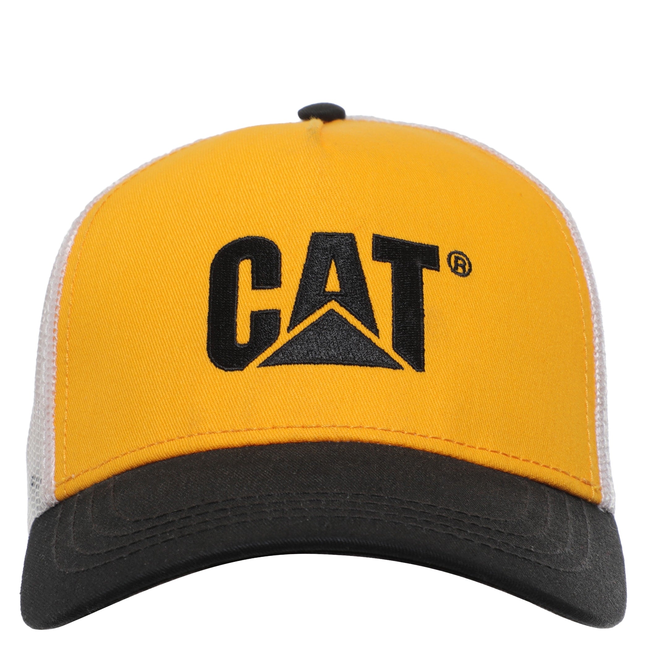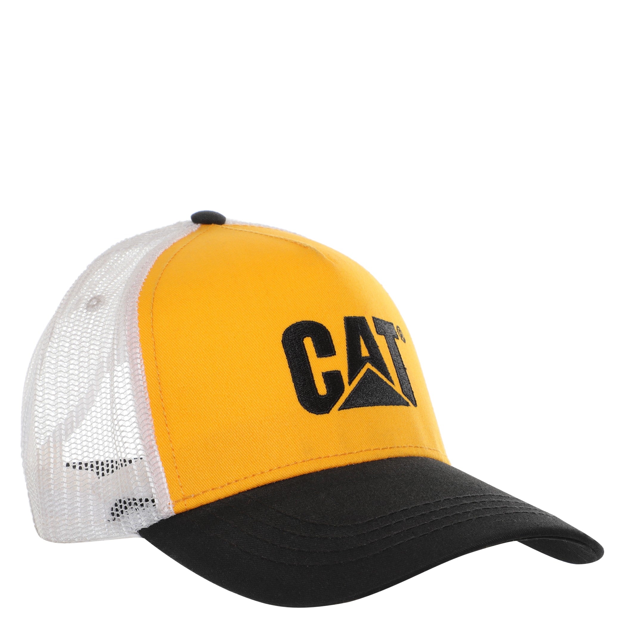 Gorra Cat para hombre elaborada en material textil color amarillo con negro y un diseño clásico de seis paneles. En la parte frontal, luce un llamativo logo de la marca el cual está hecho de material texturizado y en relieve. Ideal para protegerte del sol y complementar un estilo casual con un toque utilitario.